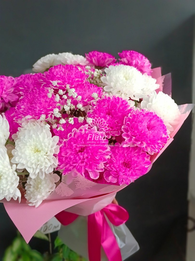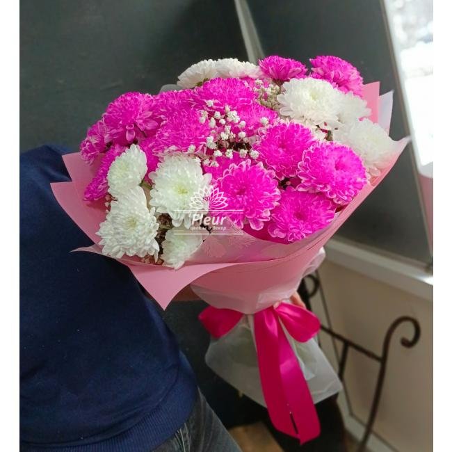 Описание Яркий букет из пышных хризантем!