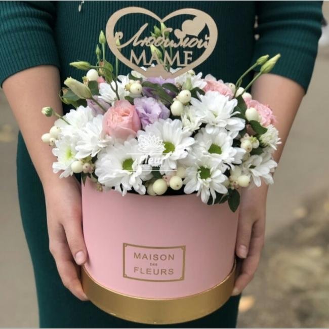 Описание Подарочная композиция из живых цветов для любимой мамули.